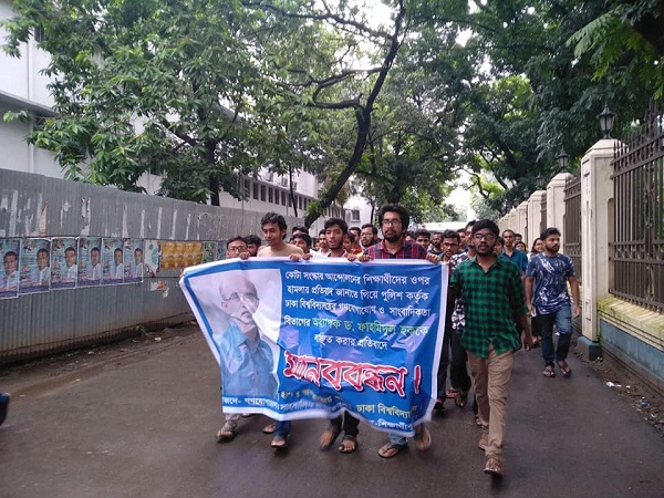 বুধবার দুপুরে ঢাকা বিশ্ববিদ্যালয়ের অপরাজেয় বাংলার পাদদেশে মানববন্ধন অনুষ্ঠিত হয়। মানববন্ধন শেষে শিক্ষার্থীরা বিক্ষোভ মিছিল করে। মিছিলটি অপরাজেয় বাংলা থেকে শুরু হয়ে ক্যাম্পাসের গুরুত্বপূর্ণ স্থান প্রদক্ষিণ করে অপরাজেয় বাংলায় এসে শেষ হয়।