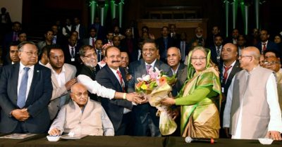প্রধানমন্ত্রী অনুষ্ঠান সঞ্চালককে কাছে ডেকে নিয়ে জানতে চান, নাজমুল কীভাবে এখানে আওয়ামী লীগের অনুষ্ঠানে বক্তব্য দেয়ার সুযোগ পেলো? (সুত্রঃ কালেরকন্ঠ, ২২ এপ্রিল)