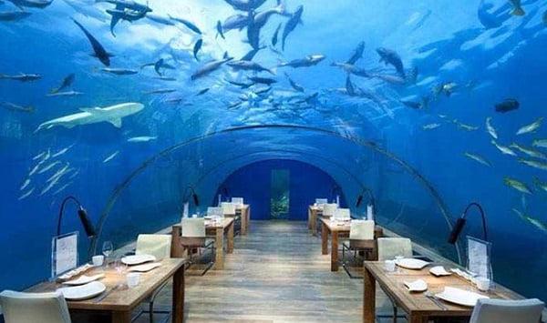 আর হোটেলের রেস্টুরেন্টে ঢোকার মূল দরজা পানির মধ্যে ভাসমান কাঠের একটি ব্রিজ পাড় হতে হবে। আর এ ব্রিজটি দড়ির সাহায্যে সমুদ্রের তলদেশে আটকানো থাকে বলে তা জোয়ার ভাটার সময় ভেসে যায় না। সমুদ্রের নিচে ১৮০ ডিগ্রি প্যানরোমিক ভিউতে বসে রেস্টুরেন্টের খাবারের তালিকা অনুযায়ী মালদ্বীপের গলদা চিংড়ি আর পশ্চিমা খাবারের স্বাদ গ্রহণ করতে পারেন।