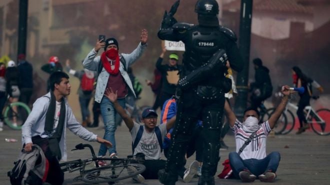 গত বৃহস্পতিবার থেকেই কলম্বিয়াজুড়ে আড়াই লাখের বেশি মানুষ সরকারবিরোধী বিক্ষোভে অংশ নেয়। ন্যূনতম মজুরির হার, কর কাঠামোর পরিবর্তন, পেনশন সুবিধাসহ নানা দাবিতে আন্দোলন করে আসছে বিক্ষোভকারীরা।