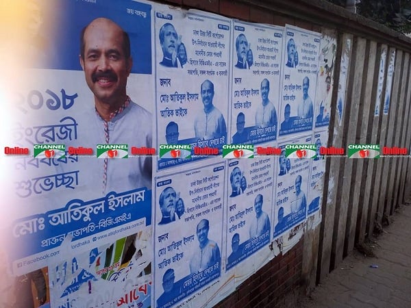এখানে তার নামে দেখা যায় দু’রকমের পোস্টার। একটিতে হাস্যোজ্জ্বল মুখে ইংরেজি নববর্ষের শুভেচ্ছা জানাচ্ছেন তিনি। এই পোস্টারের পাশেই তাকে মেয়র হিসেবে দেখতে চেয়ে পোস্টার সেঁটেছেন কৃষিপণ্যের পাইকারী ব্যবসায়ী আলহাজ্ব এ আর আলমগীর।