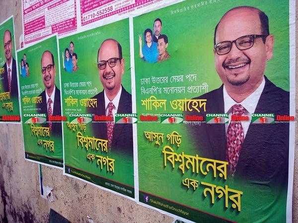 তেজগাঁও শিল্প এলাকার তিব্বত মোড়ের কাছাকাছি ইম্পালস হসপিটালে ঢোকার রাস্তা সংলগ্ন প্রাচীরে আজও দেখা গেছে মেয়র পদে বিএনপির মনোনয়ন প্রত্যাশী শাকিল ওয়াহেদের পোস্টার। তার পোস্টারের ওপরেই আছে আওয়ামী লীগের আরেক মনোনয়ন প্রত্যাশী আদম তমিজি হকের পোস্টার।