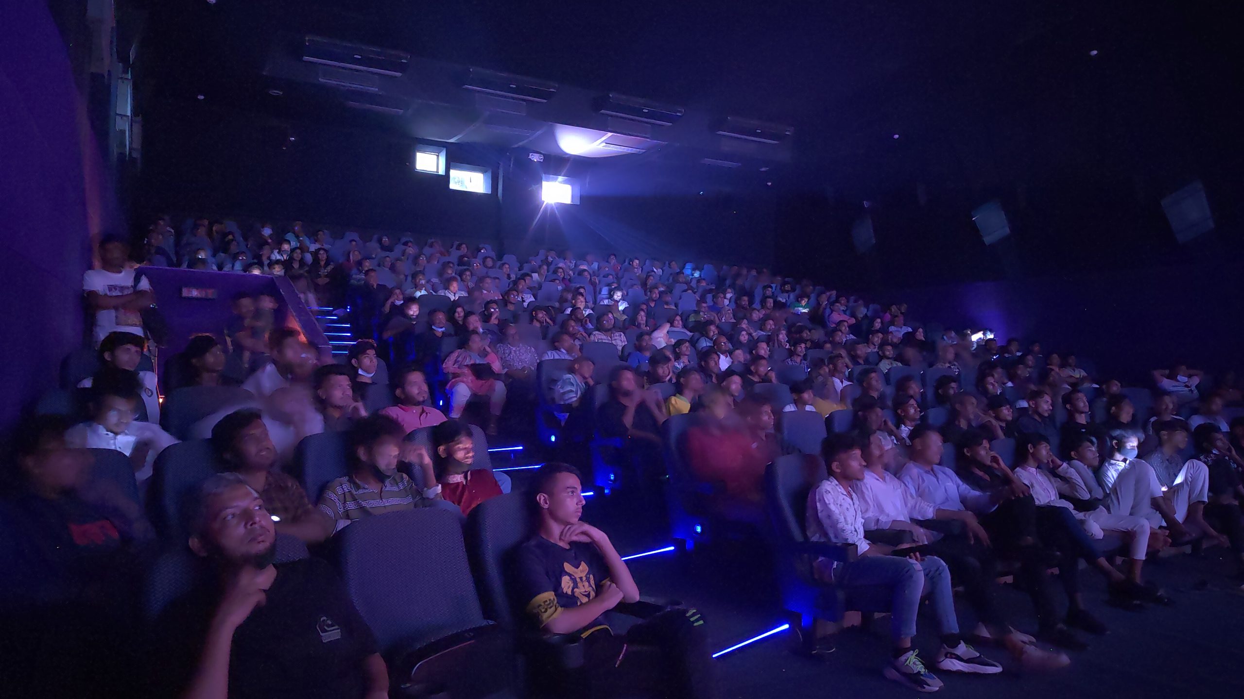 তবে ফিরে যাননি। দর্শকদের সঙ্গে সিনেমাটি উপভোগের জন্য সিঁড়িতেই বসে পড়েন। হলভর্তি দর্শকদের সাথে সিনেমা দেখতে দেখতে বারবার আবেগঘন হয়ে পড়ছিলেন তারা।