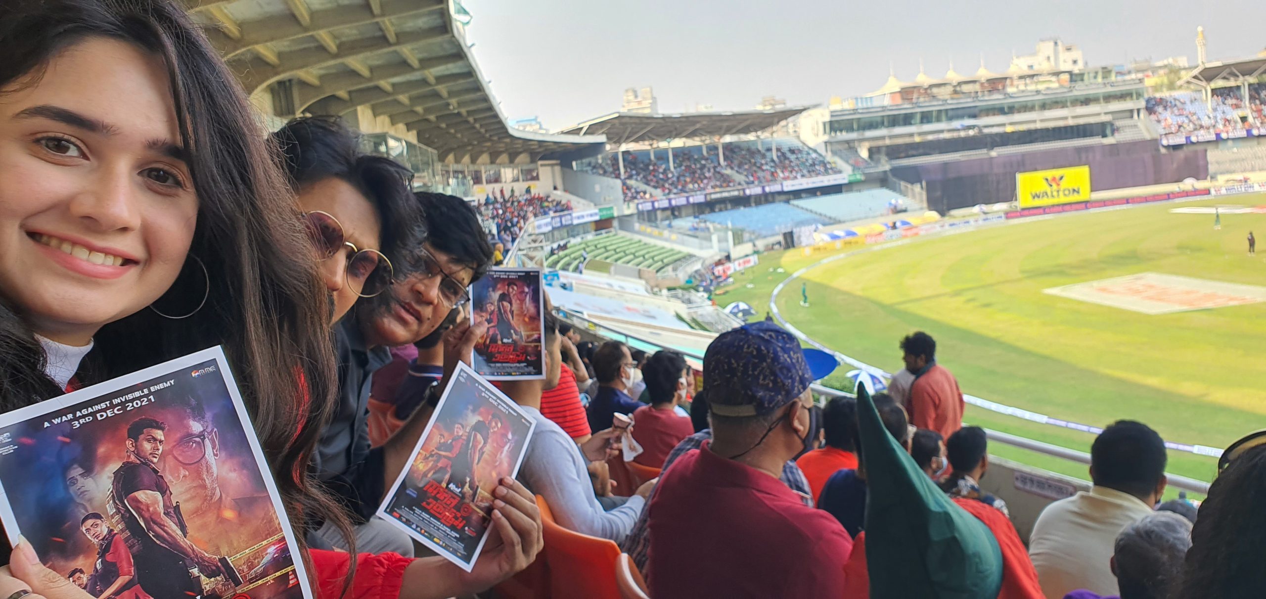 মাঠে দর্শক গ্যালারিতে বসে বাংলাদেশ ক্রিকেট টিমকে উৎসাহ দিতে দেখা যায় তাদের। সবার হাতে ছিল ‘মিশন এক্সট্রিম’র পোস্টার। একই সঙ্গে ধারাভাষ্যকার শামীম চৌধুরী সিনেমাটির বিস্তারিত দর্শকদের কাছে তুলে ধরেন।
