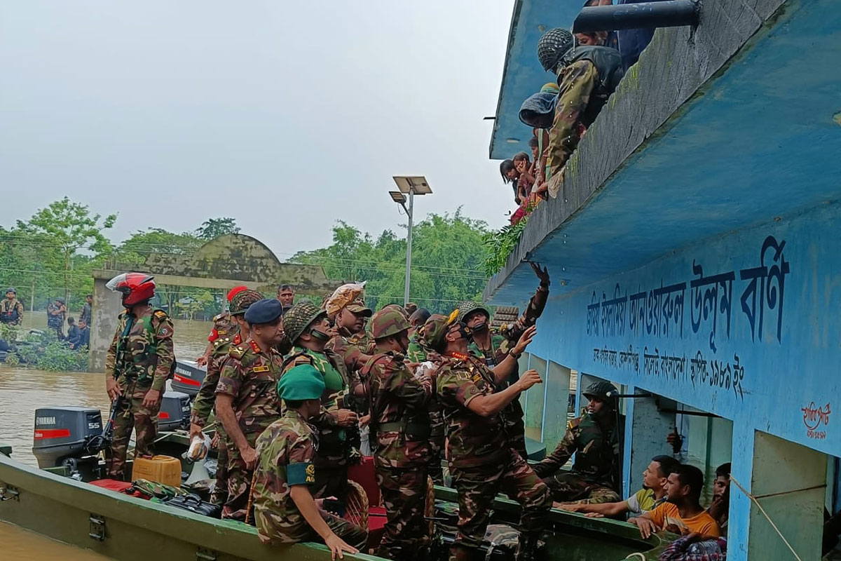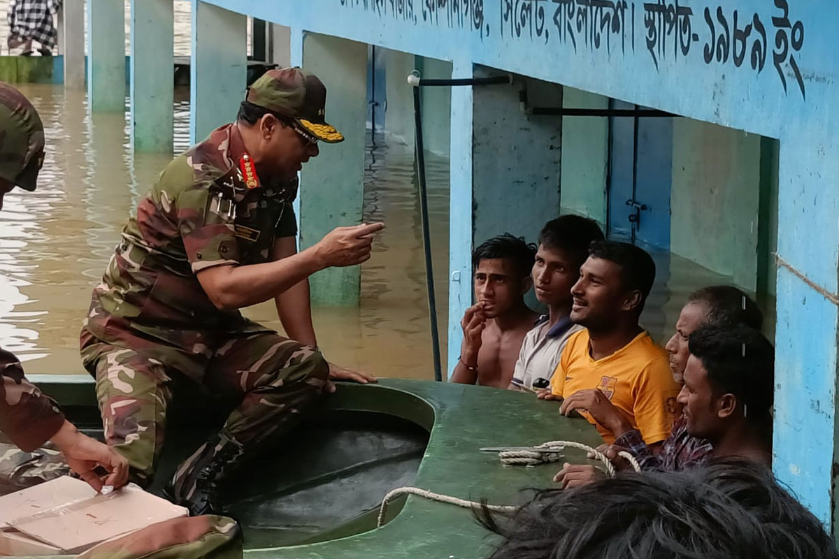 সেনাবাহিনীর প্রধান জেনারেল এস এম শফিউদ্দিন আহমেদ সিলেটের কোম্পানিগঞ্জে বন্যা দুর্গতদের মাঝে ত্রাণ বিতরণ করেন