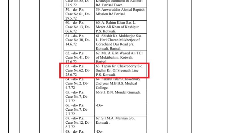 বাসদ নেত্রী ডা. মনীষা চক্রবর্ত্তী তার ফেসবুক স্ট্যাটাসে লিখেন: ‘মানুষের জন্য নিঃস্বার্থ কাজ করার পুরস্কার পেলাম আজ। ধন্যবাদ আওয়ামী লীগকে। সদ্য প্রকাশিত রাজাকারদের গেজেটে আমার বাবা এবং ঠাকুমার নাম প্রকাশিত হয়েছে।আমার বাবা অ্যাডভোকেট তপন কুমার চক্রবর্ত্তী একজন গেজেটেড মুক্তিযোদ্ধা। ক্রমিক নম্বর ১১২, পৃষ্ঠা ৪১১৩। তিনি নিয়মিত মুক্তিযোদ্ধা ভাতাও পেয়ে থাকেন! আজ রাজাকারের তালিকায় তিনি ৬৩ নম্বর রাজাকার।আমার ঠাকুরদা অ্যাডভোকেট সুধির কুমার চক্রবর্ত্তীকে পাকিস্তানি মিলিটারি বাহিনী বাসা থেকে ধরে নিয়ে গিয়ে হত্যা করে। তিনিও ভাতাপ্রাপ্ত মুক্তিযোদ্ধা হিসেবে স্বীকৃত। তার সহধর্মিণী আমার ঠাকুমা উষা রানী চক্রবর্ত্তীকে রাজাকারের তালিকায় ৪৫ নম্বরে অন্তর্ভুক্ত করা হয়েছে।’