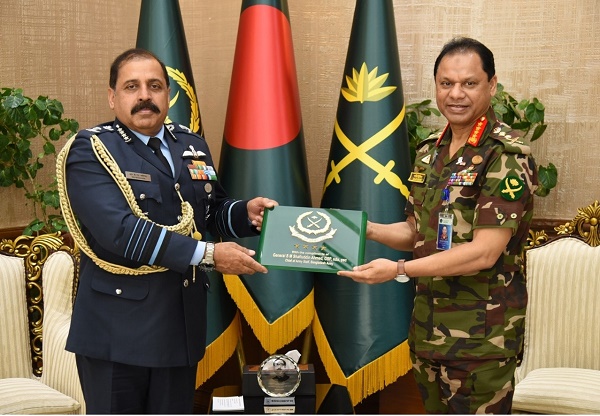 সেনাবাহিনী প্রধান জেনারেল এস এম শফিউদ্দিন আহমেদের সফররত ভারতীয় বিমান বাহিনী প্রধান এয়ার চিফ মার্শাল রাকেশ কুমার সিং ভাদৌরিয়া সৌজন্য সাক্ষাত করেছেন।