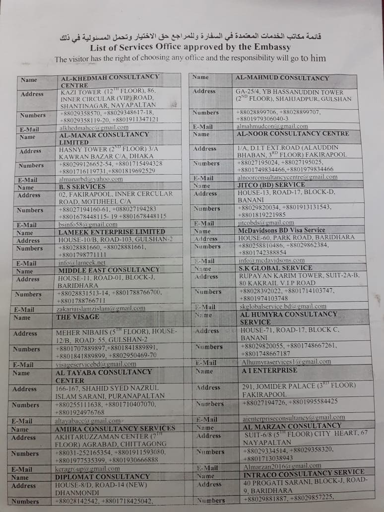 দূতাবাসের ওয়েবসাইটে ৩১টি অনুমোদিত সার্ভিস সেন্টারের তালিকা দেওয়া আছে। ভিসা সংক্রান্ত বিষয়ে সেখানে যোগাযোগ করতে বলা হয়েছে।