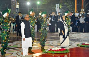 এরপর শহীদ বেদীতে ফুল দিয়ে শ্রদ্ধা জানান জাতীয় সংসদের স্পিকার শিরীন শারমিন চৌধুরী, ডেপুটি স্পিকার ফজলে রাব্বী মিয়া ও বিরোধী দলীয় নেতা রওশন এরশাদ।