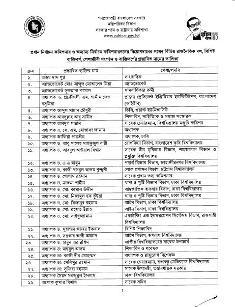 প্রধান নির্বাচন কমিশনার ও নির্বাচন কমিশনার নিয়োগে প্রস্তাবিত নামের তালিকা প্রকাশ করেছে সার্চ কমিটি।