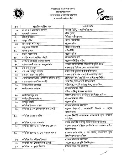 তালিকায় থাকাদের মধ্যে অন্যতমরা হলেন: সাংবাদিক অজয় দাশ গুপ্ত, মানবাধিকার কর্মী অ্যাডভোকেট সুলতানা কামাল, ভিসি (ওয়াল্ড ইউনিভার্সিটি) অধ্যাপক আব্দুল মান্নান চৌধুরী, শিক্ষাবিদ অধ্যাপক আবদুল্লাহ আবু সায়ীদ, অধ্যাপক এ.কে.এম মুস্তফা জামান, সাবেক প্রধান তথ্য কমিশনার অধ্যাপক ড. গোলাম রহমান, বিশিষ্ট শিক্ষাবিদ অধ্যাপক ড. মুহাম্মদ জাফর ইকবাল, ঢাকা বিশ্ববিদ্যালয়ের অধ্যাপক সৈয়দ মঞ্জুরুল ইসলাম, সাবেক ভিসি ঢাকা বিশ্ববিদ্যালয় আ আ ম স আরেফিন সিদ্দিক, সাবেক সচিব আবু আলম শহীদ খান, সাবেক সচিব উজ্জল বিকাশ দত্ত, সাবেক বিচারপতি এ এইচ এম শামসুদ্দিন চৌধুরী, সাবেক চেয়ারম্যান জাতীয় মানবাধিকার কমিশন কাজী রিয়াজুল হক।