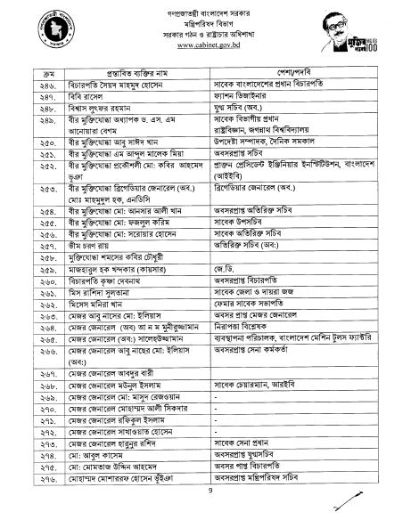 ব্যক্তি, দল, সংগঠনের প্রস্তাবিত সব নাম সোমবার সন্ধ্যায় মন্ত্রিপরিষদের ওয়েবসাইটে প্রকাশ করা হয়। মোট ৩২২ জনের নাম প্রকাশ করা হয়েছে।