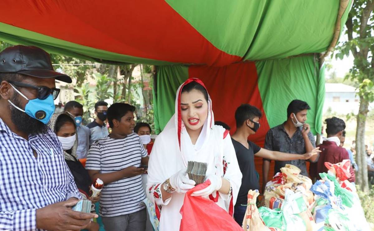 রবিবার স্থানীয় পুলিশ প্রশাসনের সহায়তায় নিরাপদ দূরত্ব বজায় রেখে বর্ষা নিজে উপস্থিত থেকে তার এলাকায় অসচ্ছল মানুষদের নিত্য প্রয়োজনীয় খাদ্য ও নগদ অর্থ দান করেন।