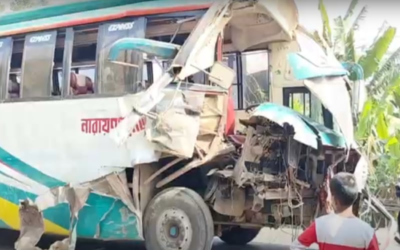 বরিশালে বাকেরগঞ্জে নারায়ণগঞ্জ ট্রাভেসলসের একটি যাত্রীবাহী বাস ও ট্রাকের সংঘর্ষে ট্রাক চালক মাহাবুব হোসেন নিহত হয়েছে। এই ঘটনায় আহত হয়েছেন আরও ১০ জন।