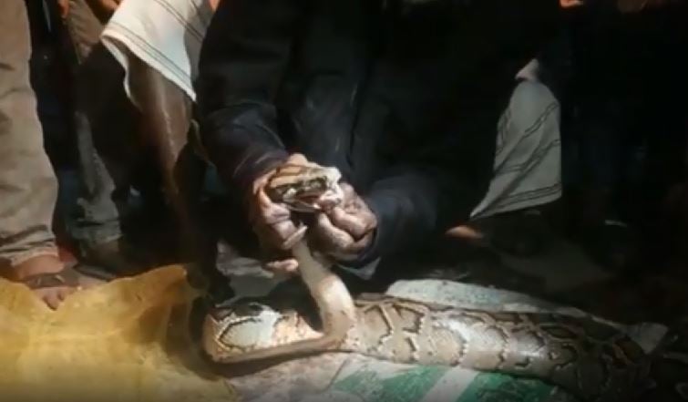 জয়নাল আকন জানান, তার মাছের ঘেরে স্যালো মেশিন দিয়ে পানি সেচ দেওয়ার সময় হঠাৎ করে বড় আকারের একটি অজগর সাপ দেখতে পান। পরে স্থানীয় লোকজন মিলে সাপটিকে নিয়ন্ত্রণে আনেন।
