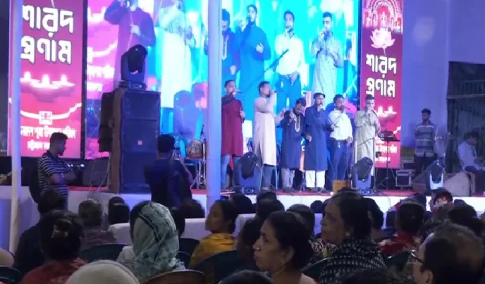 জানা গেছে, চট্টগ্রাম কালচারাল একাডেমি নামের একটি সাংস্কৃতিক সংগঠনের ছয় সদস্য এই দুর্গাপূজার মঞ্চে দুটি গান পরিবেশন করেন। এর মধ্যে একটি গান ছিল ‘শুধু মুসলমানের লাগি আসেনিকো ইসলাম’।