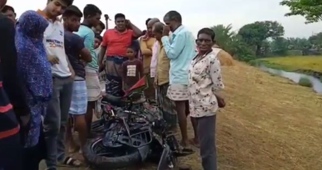 এলাকার প্রত্যক্ষদর্শী রবিউল ইসলাম জানান, দুর্ঘটনায় মোটরসাইকেলটি দুমড়েমুচড়ে গেছে।