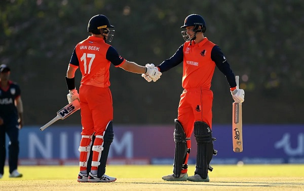 অপর ম্যাচে নেদারল্যান্ডসের বিপেক্ষে আগে ব্যাটে নেমে শুরুতেই চাপে পড়ে যুক্তরাষ্ট্র। ধারাবাহিকভাবেই হারাতে থাকে উইকেট। তিন ব্যাটার ব্যতীত উল্লেখযোগ্য রান করতে পারেননি অন্য কেউ। শেষ অবধি মার্কিনদের সংগ্রহ দাঁড়ায় ৮ উইকেটে ২১১ রান।