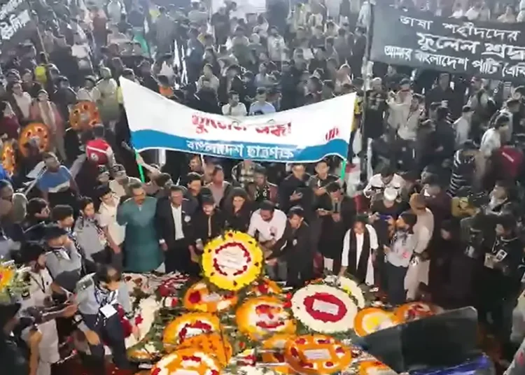 এর আগে অমর একুশে ও আন্তর্জাতিক মাতৃভাষা দিবস উপলক্ষে ভাষা আন্দোলনের শহীদদের প্রতি গভীর শ্রদ্ধা নিবেদন করেছেন রাষ্ট্রপতি মো. সাহাবুদ্দিন ও প্রধান উপদেষ্টা ড. মুহাম্মদ ইউনূস। বৃহস্পতিবার দিবাগত রাত ১২টা ১ মিনিটে রাষ্ট্রপতি মো. সাহাবুদ্দিন কেন্দ্রীয় শহীদ মিনারে পুষ্পস্তবক অর্পণ করে শ্রদ্ধা নিবেদন করেন। শ্রদ্ধা নিবেদন শেষে ভাষাশহীদদের স্মৃতির প্রতি গভীর শ্রদ্ধা জানিয়ে রাষ্ট্রপতি কিছুক্ষণ নীরবে দাঁড়িয়ে থাকেন।