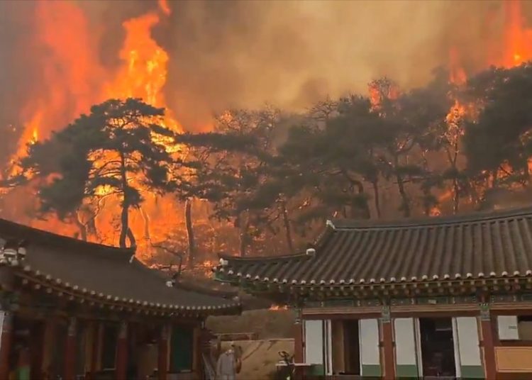 সাউথ কোরিয়ায় ইতিহাসের সবচেয়ে ভয়াবহ দাবানলে কমপক্ষে ২৬ জন নিহত ও ২৬ জন আহত হয়েছেন। যাদের মধ্যে ১২ জনের অবস্থা সংকটাপন্ন। মানুষ এবং প্রাচীন নিদর্শন উদ্ধারের চেষ্টা করছেন দমকলকর্মীরা।