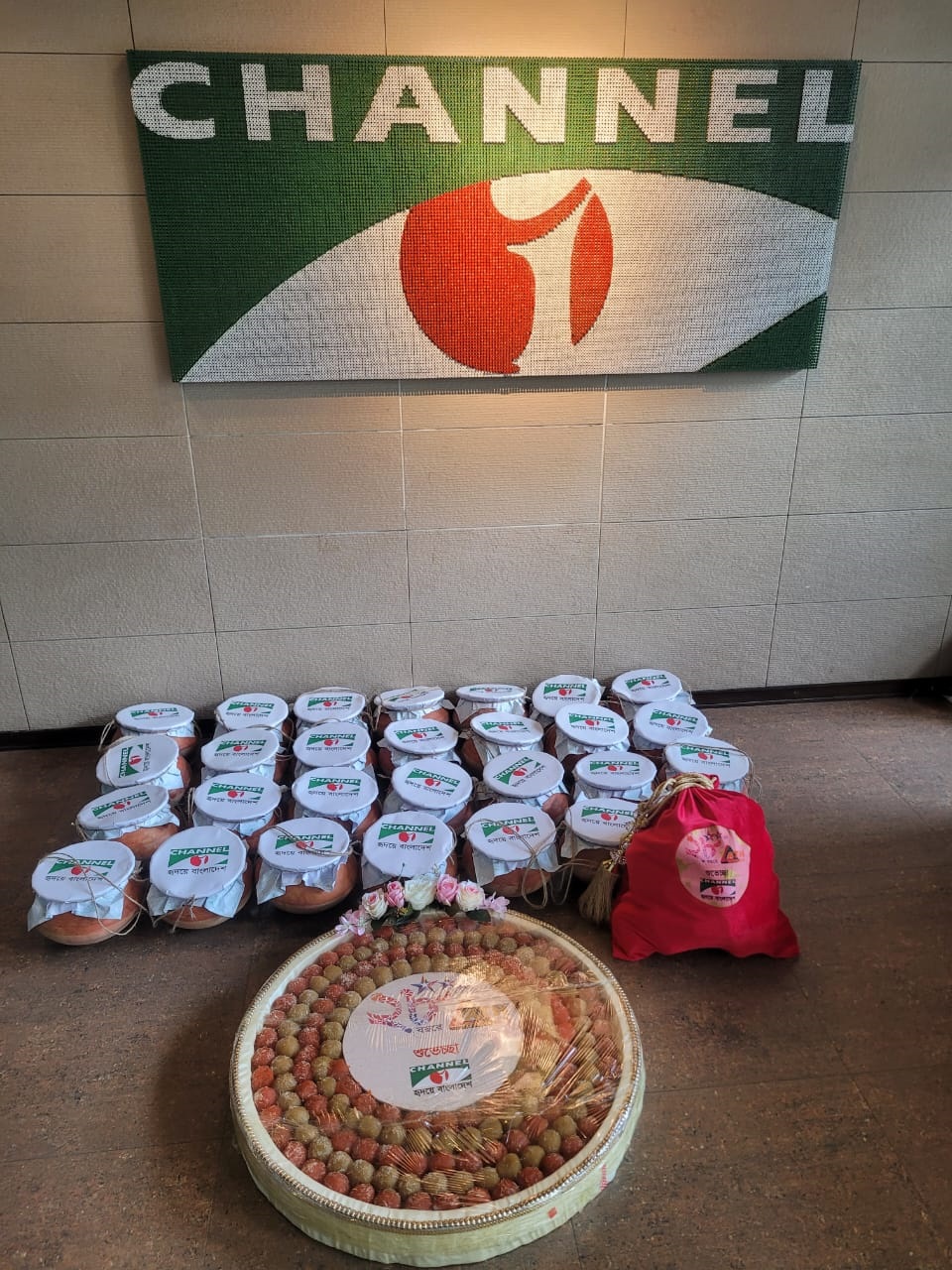 রঙিন সাজে ব্যান্ড পার্টি নিয়ে মিষ্টির হাঁড়ি, স্বর্ণ মুদ্রার আদলে উপহার, মিষ্টির ডালিসহ চ্যানেল আইয়ের প্রতিনিধিগণ উপহার সামগ্রী তুলে দেন এটিএন বাংলার চেয়ারম্যান ড. মাহফুজুর রহমান এর হাতে। আনন্দ চিত্তে তিনি শুভেচ্ছা উপহার গ্রহণ করেন।