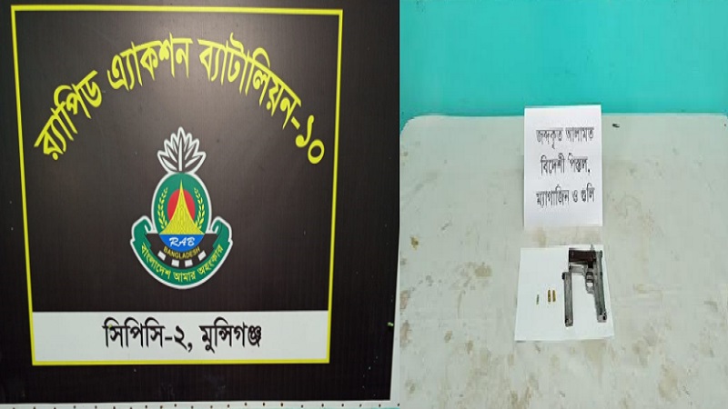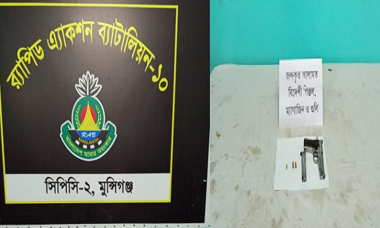 অপরাধ দমন অভিযানের অংশ হিসেবে মুন্সিগঞ্জের শ্রীনগর থানার বাঘড়া এলাকায় অভিযান পরিচালনা করে মাদক ও ২ রাউন্ড তাজানগুলিসহ একটি বিদেশী পিস্তল উদ্ধার করেছে র্যাব-১০। এছাড়াও আরেকটি পৃথক অভিযানে ৫৫ কেজি গাজাসহ ৩ মাদক কারবারিকে আটক করে র্যাবের বিশেষ এ দলটি।