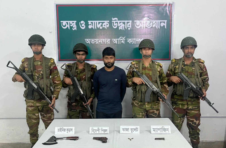 যশোরের অভয়নগরে সেনাবাহিনীর অভিযানে অস্ত্র-গুলি-মাদকসহ ৩ সন্ত্রাসী ও মাদক ব্যবসায়ীকে আটক করা হয়েছে।