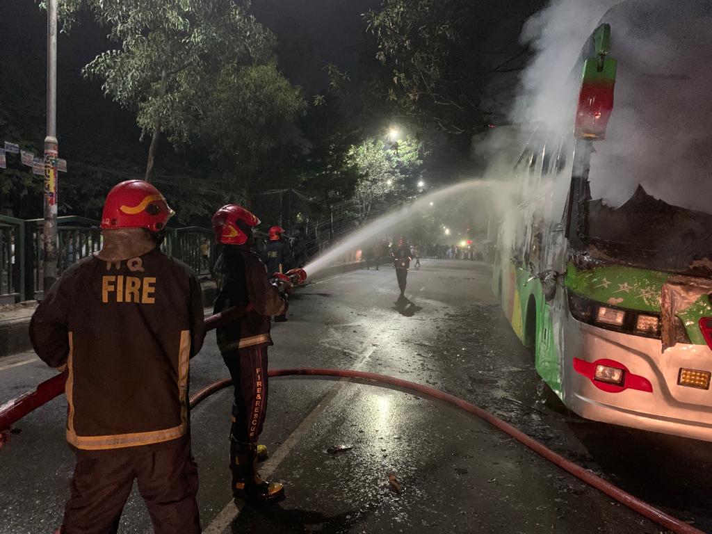ফায়ার সার্ভিস ও সিভিল ডিফেন্স অধিদপ্তরের মিডিয়া কর্মকর্তা তালহা বিন জসিম জানান, যাত্রীবাহী এসব বাসে আগুন দেওয়ার খবর পেয়ে দ্রুত ঘটনাস্থলে গিয়ে তাদের কর্মীরা আগুন নিয়ন্ত্রণে আনে।