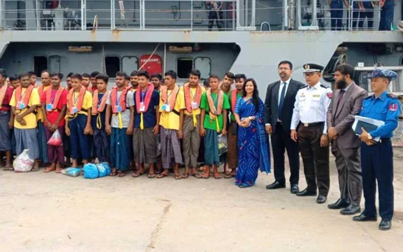 এর আগে মিয়ানমার নৌবাহিনীর একটি জাহাজে করে বাংলাদেশের জলসীমায় তাদের নিয়ে আসা হয়। পরে কোস্ট গার্ডের একটি জাহাজে করে সকাল ১০টার দিকে এসব বাংলাদেশি নাগরিকদের কক্সবাজারের নুনিয়ারছরা বিআইডব্লিউটিএর ঘাটে নিয়ে এসে তাদের হস্তান্তর করেন মিয়ানমার কর্তৃপক্ষ।