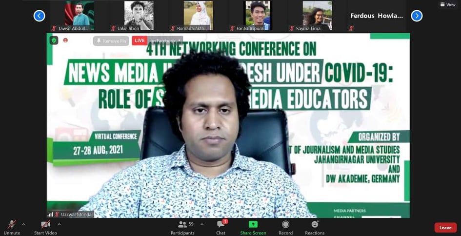 Vice-chancellor of Jahangirnagar University, Professor Dr Farzana Islam addressed the function as the Guest of Honor, while Professor Dr Golam Rahman, Editor, Ajker Patrika, Professor Dr Mozammel Hoque, Dean, Faculty of Arts and Humanities spoke on occasion as the special guests. On behalf of DW Academy, Michael Karhausen, Head of Department Asia and Europe, DW, Hannah Schempf, press attaché, German Embassy, Dhaka also addressed the inaugural function. Convenor of the Conference, Ameena Islam, Associate Professor of Journalism and Media Studies Department, Jahangirnagar University conducted the inaugural session presided over by Chairperson of the Department Sheikh Adnan Fahad.