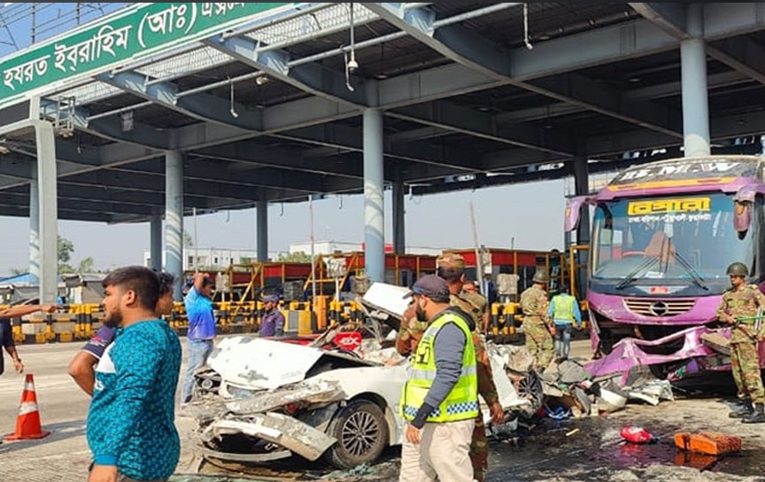 আজ ২৭ ডিসেম্বর শুক্রবার সকালে ঢাকা-মাওয়া এক্সপ্রেসওয়ের ধলেশ্বরী টোল প্লাজা এলাকায় একটি বাস নিয়ন্ত্রণ হারিয়ে প্রাইভেটকারকে ধাক্কা দিলে এই ঘটনা ঘটে।