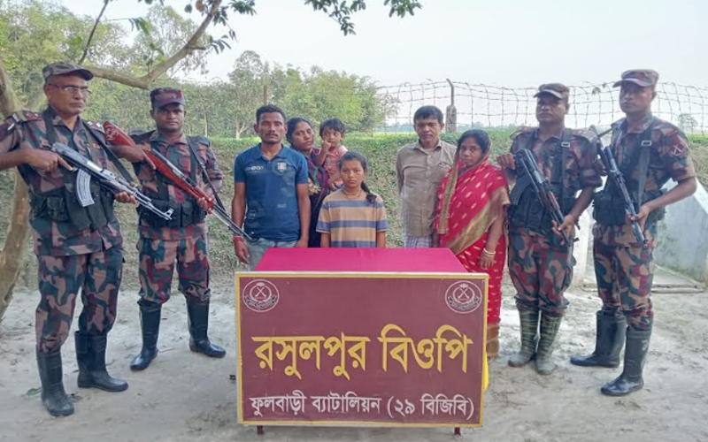 এদিকে ফুলবাড়ী ২৯ ব্যাটালিয়নের অধীন রসুলপুর বিওপির একটি টহলদল গোপন সূত্রে জানতে পারে যে, আন্তর্জাতিক শূন্য রেখা থেকে প্রায় ১৪০ গজ বাংলাদেশের অভ্যন্তরে সীমান্ত এলাকার রসুলপুর পলিপাড়া গ্রামের বাংলাদেশি নাগরিক মৃত জাহিরুল চৌধুরীর ছেলে আফিতের বাড়িতে কয়েকজন ভারতীয় নাগরিক বাংলাদেশ থেকে ভারতে প্রবেশের জন্য একত্র হয়েছে। বৃহস্পতিবার বিজিবি সদস্যরা তাৎক্ষণিক অভিযান চালিয়ে বাড়িটি ঘিরে ফেলে তল্লাশি চালিয়ে তাদের আটক করে।