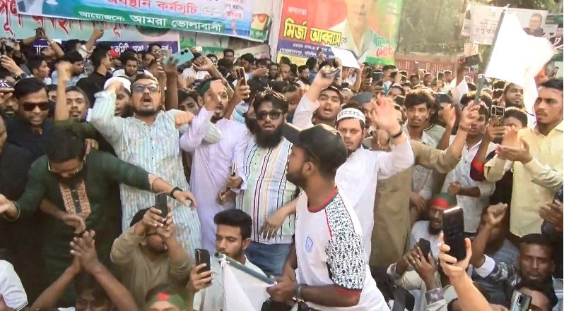 জাতীয় প্রেসক্লাবের সামনে সমাবেশ শেষে যমুনায় প্রধান উপদেষ্টার কার্যালয় যমুনার সামনে বিক্ষোভ করেন ভোলার সর্বস্তরের ছাত্র-জনতা।
