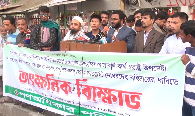 বৃহস্পতিবার (২৬ ডিসেম্বর) বিকেলে জাতীয় প্রেসক্লাবের সামনে এ বিক্ষোভ হয়।