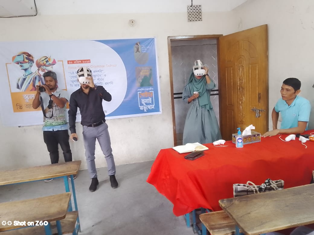 সোমবার (৫ মে) কালশী ইসলামীয়া উচ্চ বিদ্যালয়ে ভি আর প্রদর্শনীর আয়োজন করা হয়। ১ মে মীরপুর শহীদ স্মৃতি উচ্চ বিদ্যালয়ে ও ৩০ এপ্রিল ২০২৫ রোজ গার্ডেন গ্রামার স্কুলে এই প্রদর্শনী দেখানো হয়।
