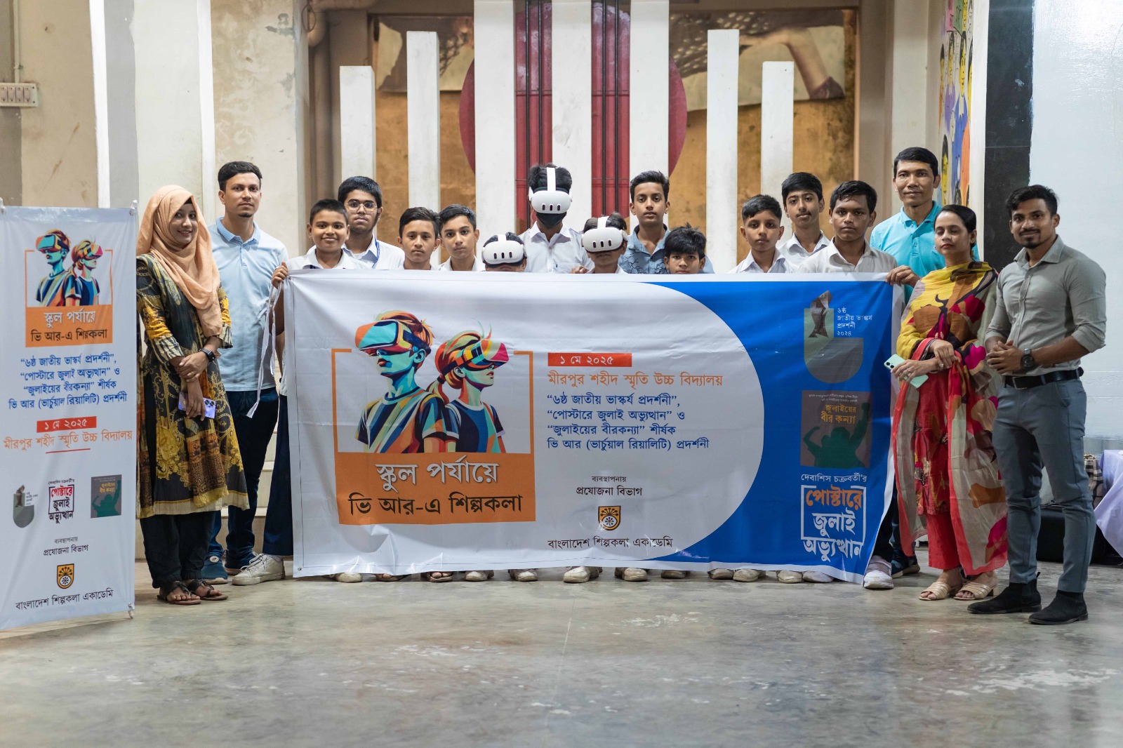 ভি-আর এর মাধ্যমে “পোস্টারে জুলাই অভ্যুত্থান” বৈষম্যহীন কোটা সংস্কার আন্দোলন থেকে জুলাই গণঅভ্যুত্থান পর্যন্ত সময়ে শিল্পী দেবাশিস চক্রবর্তীর ডিজিটাল ড্রইং-এ নির্মিত শতাধিক পোস্টার থেকে বাছাইকৃত ২০টি পোস্টার নিয়ে লাইভ এবং এ-আর (অগমেন্টেড রিয়ালিটি) ও ভি-আর (ভারচুয়াল রিয়ালিটি) প্রদর্শনী তৈরী করা হয়েছে। প্রদর্শনী জাতীয় চিত্রশালার ৫ নং গ্যালারিতে প্রযোজনা বিভাগের ব্যবস্থাপনায় গত ৭ জানুয়ারি থেকে ১৯ জানুয়ারি পর্যন্ত প্রদর্শিত হয়। এ ধরনের প্রদর্শনীতে ভার্চুয়াল রিয়ালিটির মাধ্যমে দর্শক পোস্টারগুলোর কনটেক্সট ও পরিপ্রেক্ষিতের নানা ভিডিও ফুটেজ, নিউজ ও তথ্যের মাধ্যমে জুলাই গণ অভ্যুত্থানের বিষয়ে বিস্তারিত জানার সুযোগ তৈরি করবে।