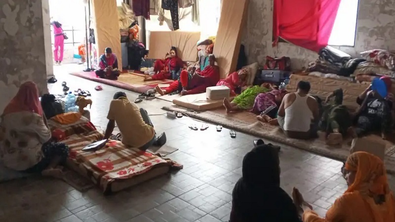 সেখানে আশ্রয় নেয়া আরেক নারী হাসি আক্তার জানালেন প্রায় শূন্য হাতে পালিয়ে আসতে হয়েছে তাদের। ফলে মানুষের সহযোগিতার ওপরই এখন চলতে হচ্ছে। হাসি বলেন, আমাদের কাগজপত্র (বৈধতার কাগজ) থাকা সত্ত্বেও আমরা রাস্তায় বের হয়ে এসেছি। মালিক কোনো খোঁজ-খবর নেয় নাই। মালিক কোন টাকা পয়সাও দেয় নাই। আমরা টাকা ছাড়াই যার যার জীবন নিয়ে রাস্তায় বের হয়ে এসেছি।