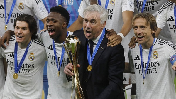 ফিফার আন্তঃমহাদেশীয় প্রতিযোগীতার ফাইনালে বুধবার রাতের ফাইনালে পাচুকাকে ৩-০ গোলে হারায় রিয়াল। লসব্লাঙ্কোসদের হয়ে গোল করেন কাইলিয়ান এমবাপে, রদ্রিগো ও ভিনিসিয়াস জুনিয়র। রিয়াল মাদ্রিদে কোচ হিসেবে আনচেলত্তির ১৫তম শিরোপা এটি। যা ক্লাবটির ১২২ বছরের ইতিহাসে সর্বোচ্চ। মুনেজের অধীনে থাকা রিয়াল জিতেছিল ১৪টি শিরোপা।