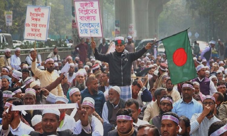 এর আগে রোববার দুপুরে রাজধানীর শাহবাগে ৬ দফা দাবিতে ইবতেদায়ী শিক্ষকদের পদযাত্রা কর্মসূচিতে সাউন্ড গেনেড নিক্ষেপ ও লাঠিচার্জ করে পুলিশ। এতে ছয়জন আহত হয়েছেন।