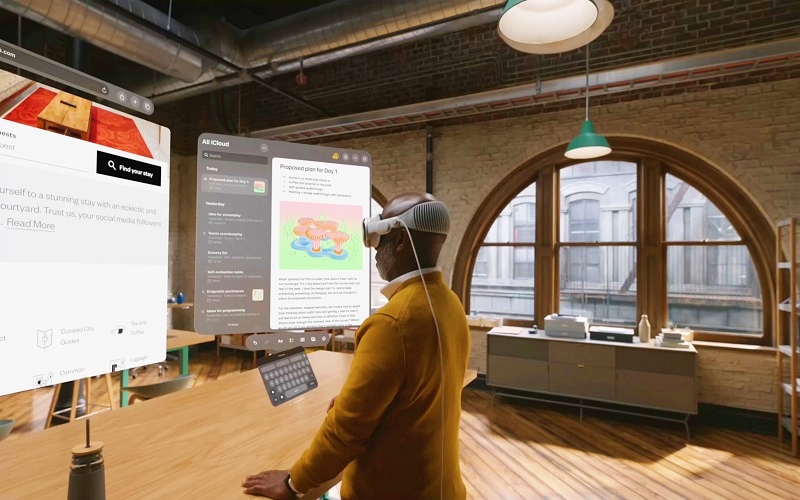 ব্যবহারকারী যেখানেই থাকুক কাজের প্রয়োজনে ওয়ার্কস্পেস বা কর্মক্ষেত্রেরমতো আবহ তৈরি করে দেবে অ্যাপল ভিশন প্রো। যেখানে ব্যবহারকারী তার ইচ্ছেমত লেখালেখি ও ইন্টারনেট ব্রাউজিং করতে পারবেন। এছাড়াও ব্রাউজারে ওপেন ট্যাবগুলোকে নিজের সুবিধামত বিন্যাস করতে পারবেন।