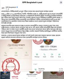 বাংলাদেশ সেনাবাহিনী ও ডিজিএফআই-এর উচ্চপদস্থ কর্মকর্তার ভুয়া পরিচয় ব্যবহার করে প্রতারণামূলক কার্যক্রম চালানোর অভিযোগে জনসাধারণকে সতর্ক করেছে সংশ্লিষ্ট কর্তৃপক্ষ।