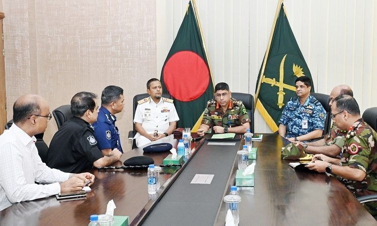 বিজ্ঞপ্তিতে বলা হয়, চলমান অরাজকতা, অগ্নিসংযোগ ও ধ্বংসাত্মক কার্যক্রম বন্ধের মাধ্যমে দেশের স্থিতিশীলতা রক্ষায় সশস্ত্র বাহিনীসহ অন্যান্য আইন-শৃঙ্খলা রক্ষাকারী বাহিনীর শক্ত অবস্থান গ্রহণের বিষয়ে বাহিনী প্রধানগণ কর্তৃক সিদ্ধান্ত গৃহিত হয়।