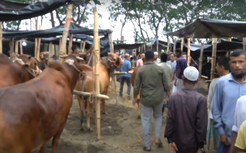 রোববার ১৬ জুন সকাল থেকেই কোরবানির গরু ছাগল কেনার জন্য হাজারও ক্রেতাদের উপস্থিতি দেখা গেছে হাটে।