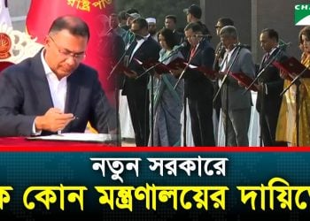 প্রধানমন্ত্রী তারেক রহমানের নতুন মন্ত্রিসভার সদস্যদের নাম ঘোষণা করা হয়েছে। কারা কোন মন্ত্রণালয়ের দায়িত্ব পেলেন বিস্তারিত জানুন।