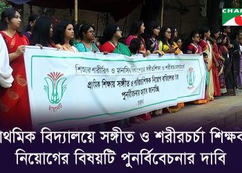 আরও পড়ুনDetailsপ্রাথমিক বিদ্যালয়ে সঙ্গীত ও শরীরচর্চা শিক্ষক নিয়োগের বিষয়টি পুনর্বিবেচনার দাবি জানিয়েছে ছায়ানট। প্রতিষ্ঠানের সাথে সংশ্লিষ্টরা সঙ্গীত পরিবেশনার মধ্য দিয়ে তাদের আবেদন তুলে ধরেন।