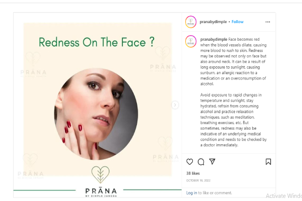 ডাঃ ডিম্পলা জাংদা তার ইনস্টাগ্রামের একটি পোস্টে লিখেছেন,শরীরের রক্তবাহী নালীগুলি যখন প্রসারিত হল তখন নালীগুলিতে রক্ত চলাচল বেশি হয় যা ত্বককে লাল করে ফেলে। সূর্যের আলোতে বেশি সময় থাকলে হতে পারে, রোদে পোড়া হতে পারে, ওষুধে বা খাবারে অ্যালার্জির প্রতিক্রিয়া হতে পারে বা অতিরিক্ত অ্যালকোহল পান করতে পারে।