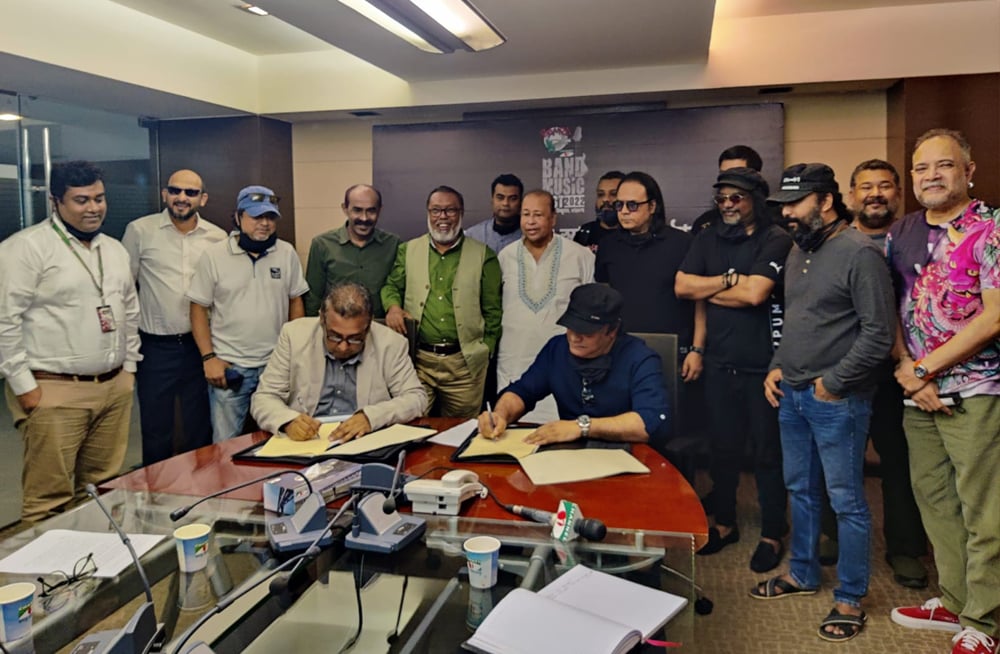 বুধবার (২৬ অক্টোবর) দুপুরে চ্যানেল আই প্রাঙ্গণে সম্পন্ন হলো বামবা-চ্যানেল আই ব্যান্ড মিউজিক ফেস্ট ২০২২ এর সমঝোতা স্বাক্ষর। যেখানে উপস্থিত ছিলেন ইমপ্রেস টেলিফিল্ম লি. ও চ্যানেল আইয়ের ব্যবস্থাপনা পরিচালক ফরিদুর রেজা সাগর। ছিলেন চ্যানেল আইয়ের পরিচালক ও বার্তা প্রধান শাইখ সিরাজ। দেশ সেরা ব্যান্ডের সদস্যরাও উপস্থিত ছিলেন।