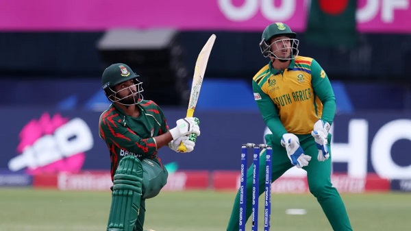 ওয়েস্ট ইন্ডিজ ও মার্কিন যুক্তরাষ্ট্রে টি-টুয়েন্টি বিশ্বকাপে গ্রুপ ‘ডি’তে দ্বিতীয় ম্যাচে সাউথ আফ্রিকা ১১৩ রান করেছিল। জবাব দিতে নেমে বাংলাদেশ ১০৯ রানে থামে, প্রোটিয়ারা জয় পায় ৪ রানে।
