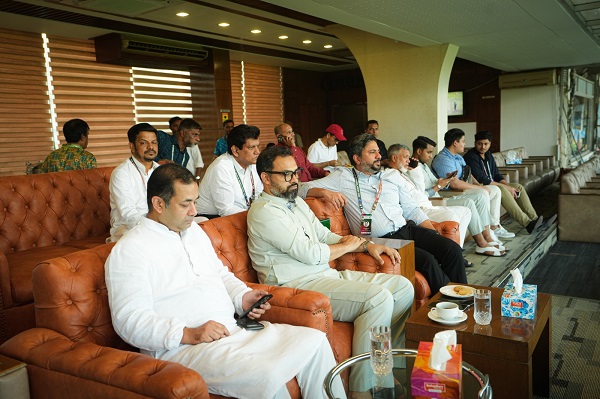 মিরপুর শের-ই-বাংলা জাতীয় ক্রিকেট স্টেডিয়ামের প্রেসিডেন্ট বক্সে বসে বাংলাদেশ-নিউজিল্যান্ডের খেলা উপভোগ করছেন যুব ও ক্রীড়া প্রতিমন্ত্রী আমিনুল হক।