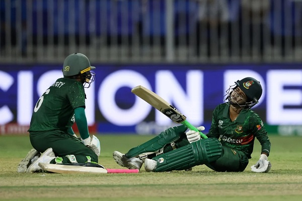 বাংলাদেশ অধিনায়ক ভালোই শুরু করেছিলেন। ১১.৩ ওভারে স্কয়ার লেগে সুইপ করে রান প্রথম রান ঠিকঠাক নেন। দ্বিতীয় রান নিতে গিয়ে আর স্ট্রাইকে পৌঁছাতে পারেননি। রান আউট হয়ে ফিরে গেছেন ২০ বলে ১৫ রান করে।